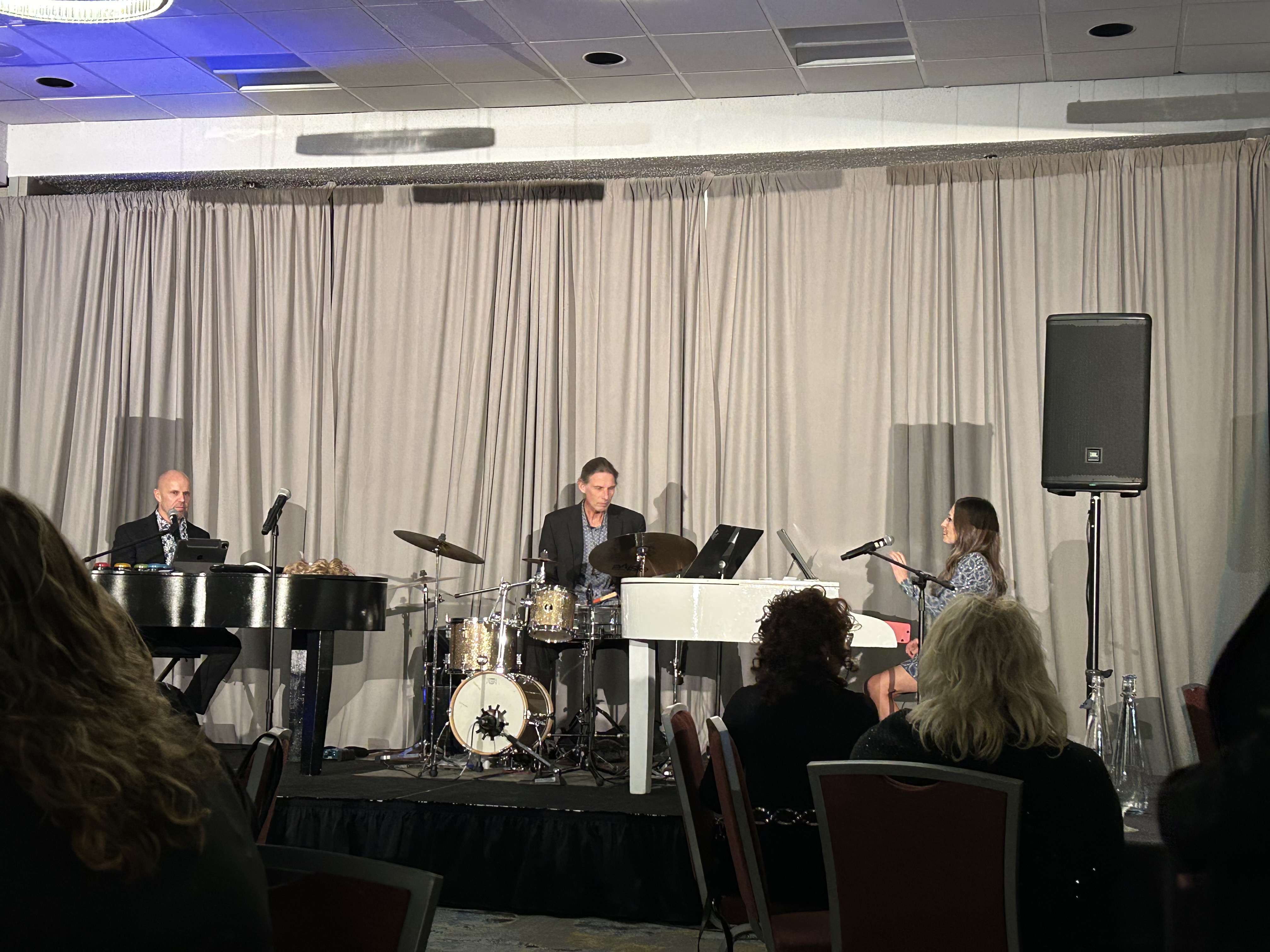 Transform the dueling piano show into a full-band energy with a live drummer, keeping the dance floor packed all night.